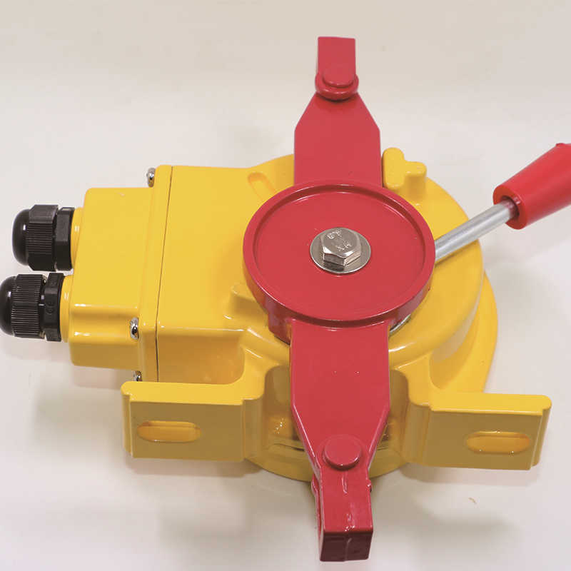 動作,輸出開關(guān)量,發(fā)出信號和停機(jī)信號。復(fù)位方式I型為自動復(fù)位,拉桿解除拉力后,凸輪結(jié)構(gòu)自動復(fù)位到原始狀態(tài)。II型為手工復(fù)位,凸輪軸回轉(zhuǎn)到一定角度自鎖定位,需手工復(fù)位手柄后凸輪方能返回原始狀態(tài)。本裝置采用防水、防塵密封設(shè)計,較好防止水、灰塵進(jìn)入機(jī)殼內(nèi)。